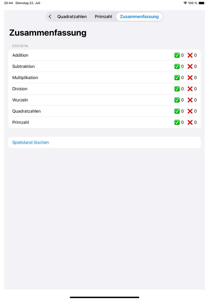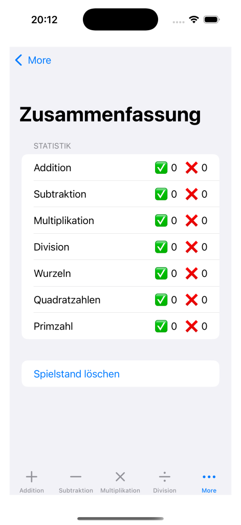 - Statistik-Übersicht pro Rechenart