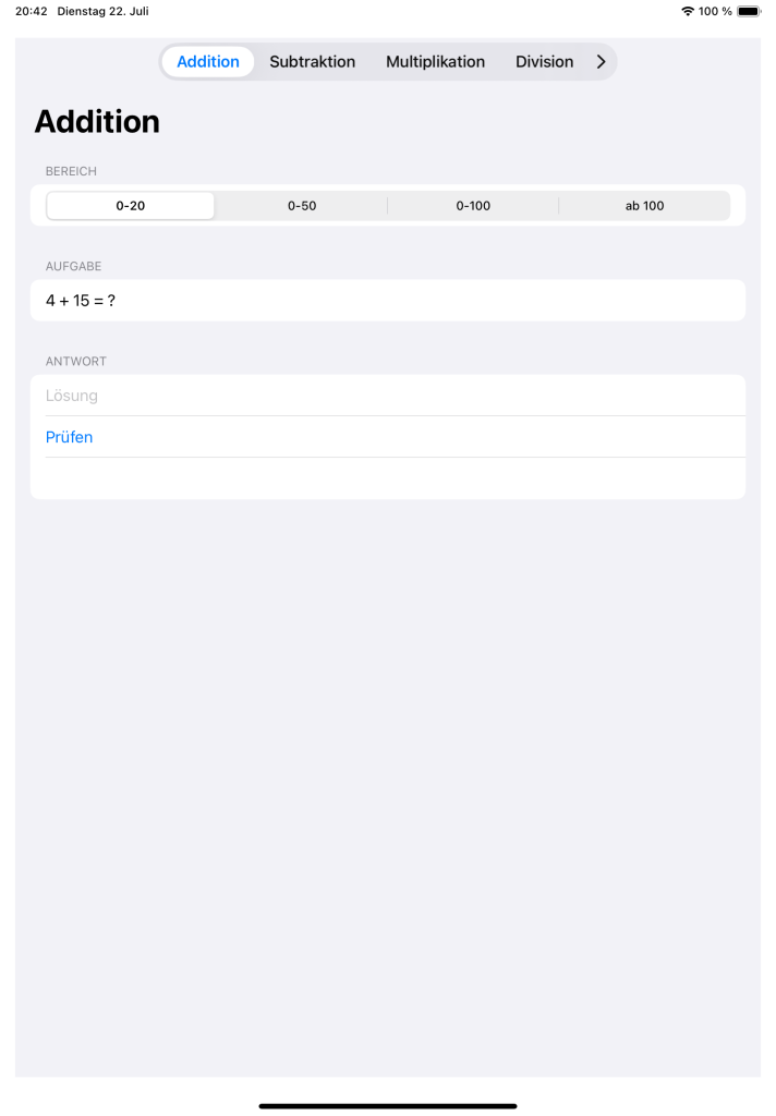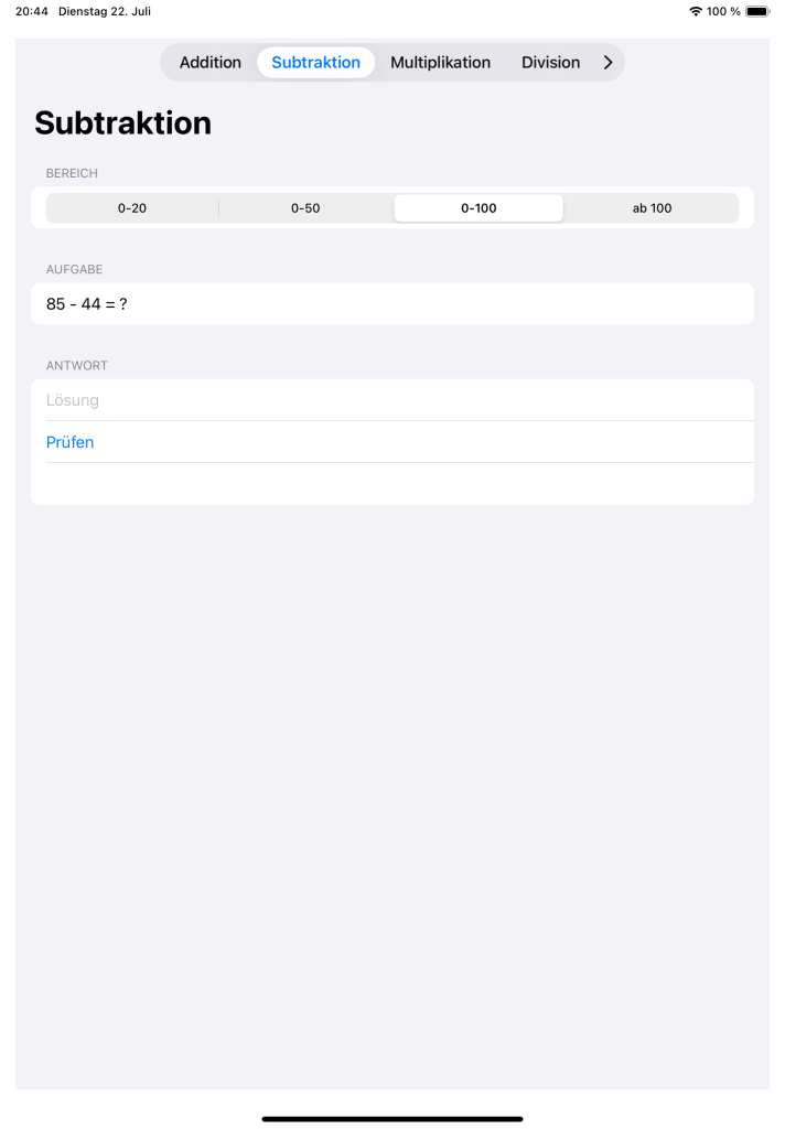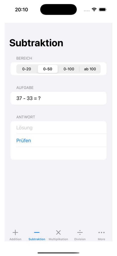 Ob Grundschule oder weiterführende Schule – Aufgaben, Zahlenbereiche und Modi passen sich deinem Niveau an und sorgen für nachhaltiges Üben mit sofortigem Feedback.