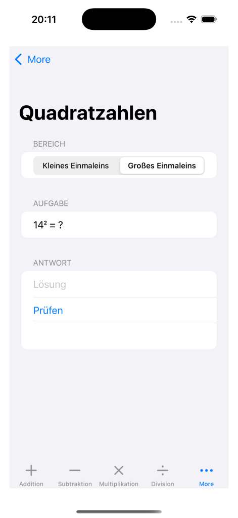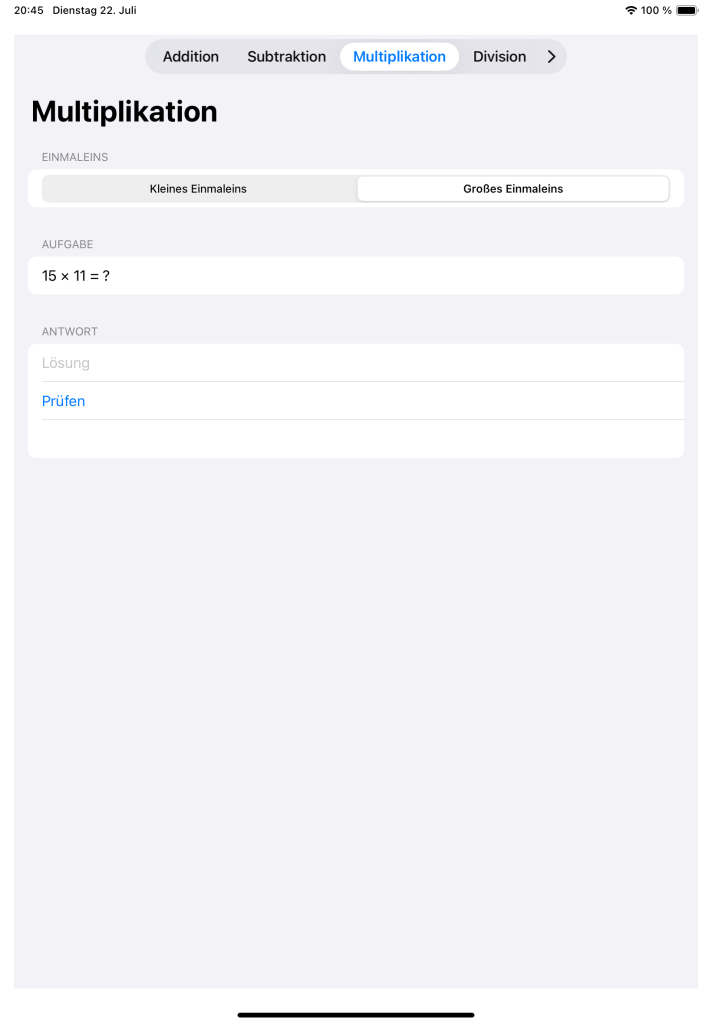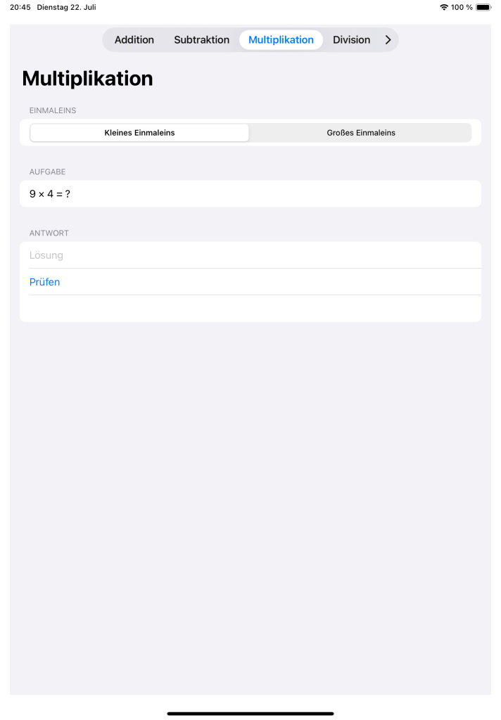 - Kleines & großes Einmaleins separat trainieren